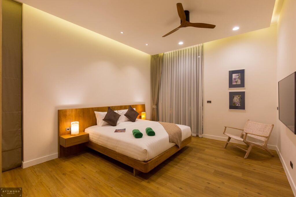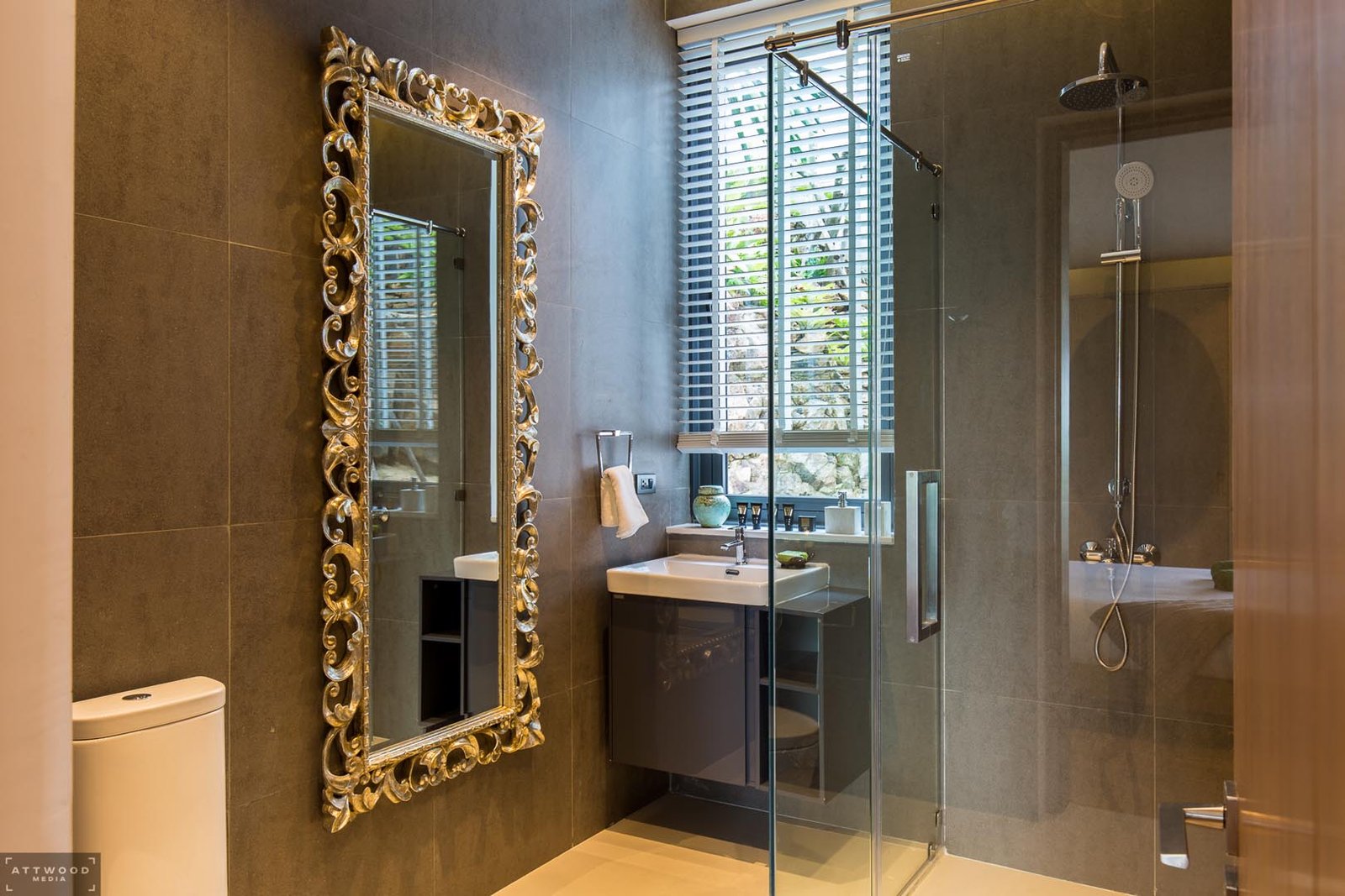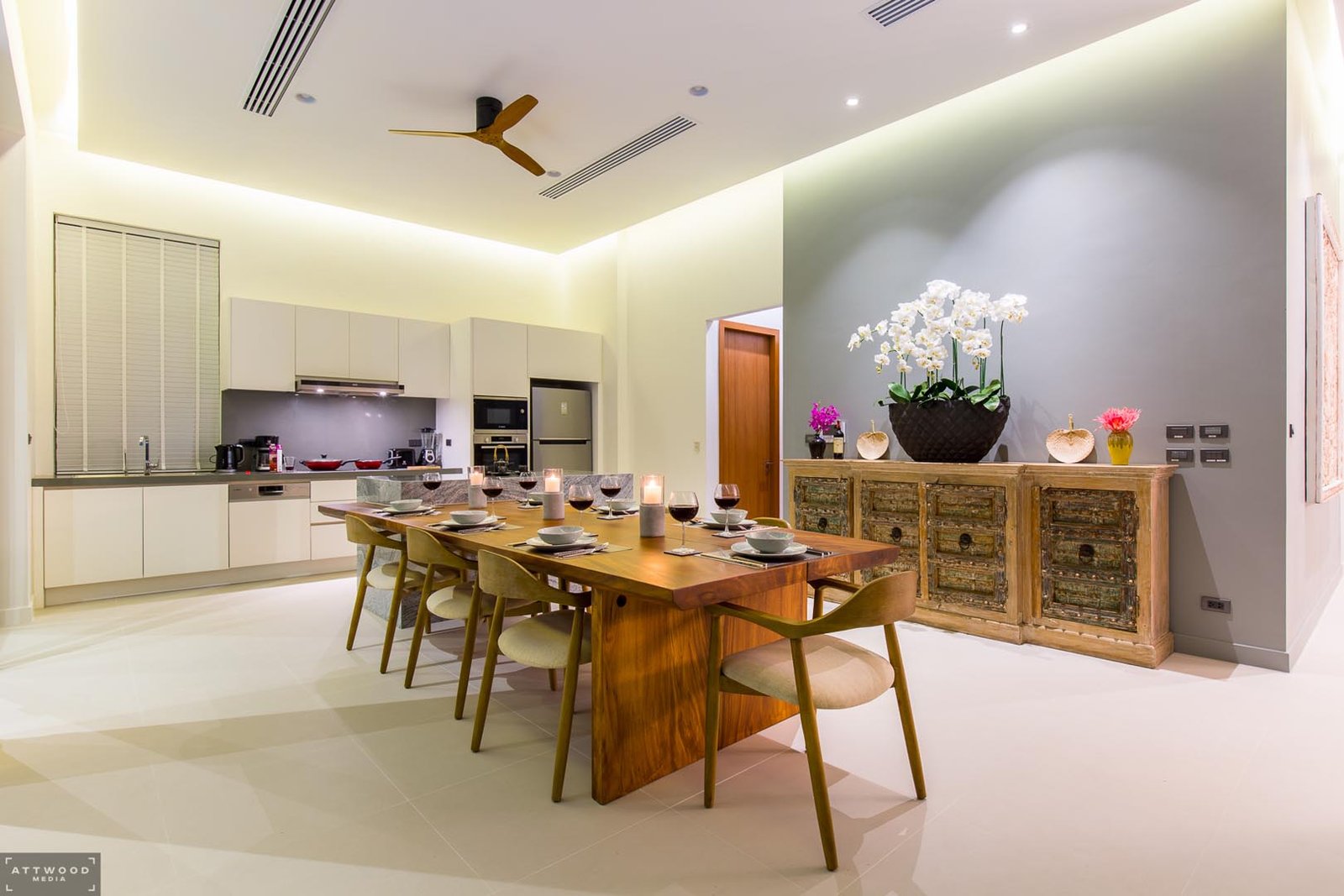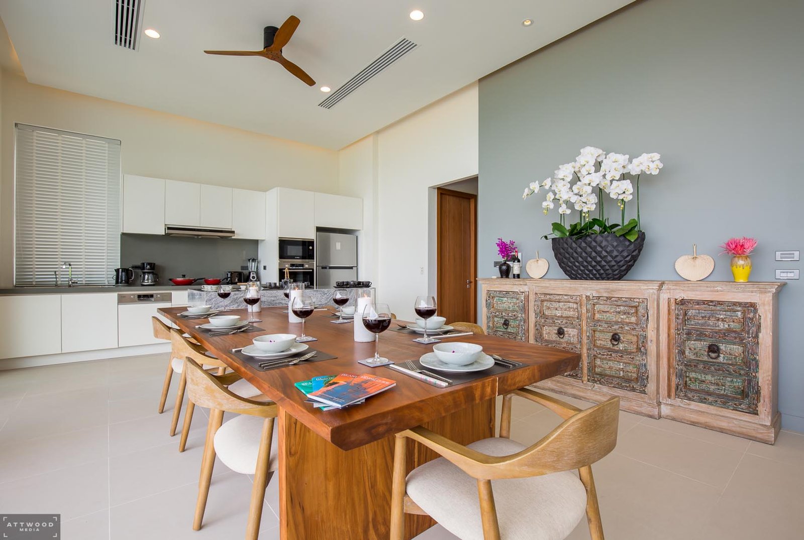 Designed to integrate the best of in and outdoor living, an sea view white infinity pool with a large outdoor terrazzo, 1 living room with one flat screen smart TV and comfortable sofa ,the villa comes fully furnished including a fully equipped western kitchen and dining area with dining table that can accommodate comfortably from 10 persons and guest bathroom and 5 bedrooms, 1 bedrooms with private bathroom in the second floor next to the pool area and 4 bedrooms at the first floor villa entrance all with private bathroom ,parking for 1 car and 2 motorcycles, CCTV cameras system, fully Air-conditioning and ceiling every rooms, Laundry room.