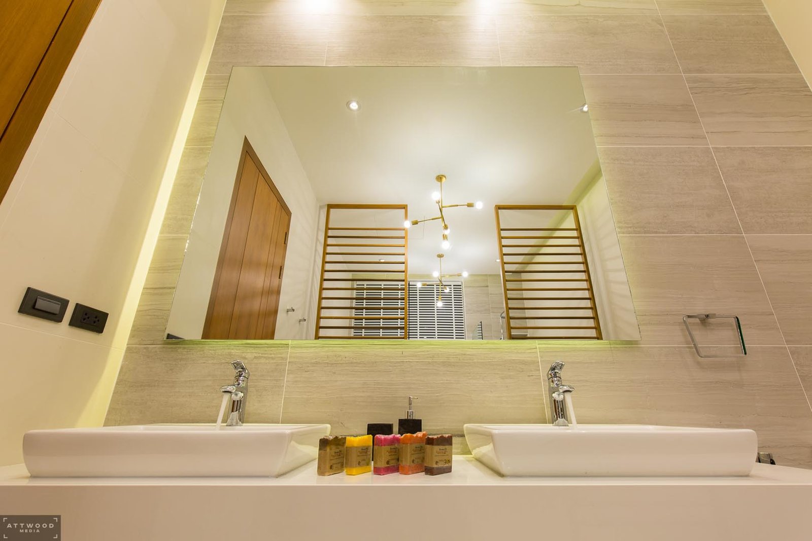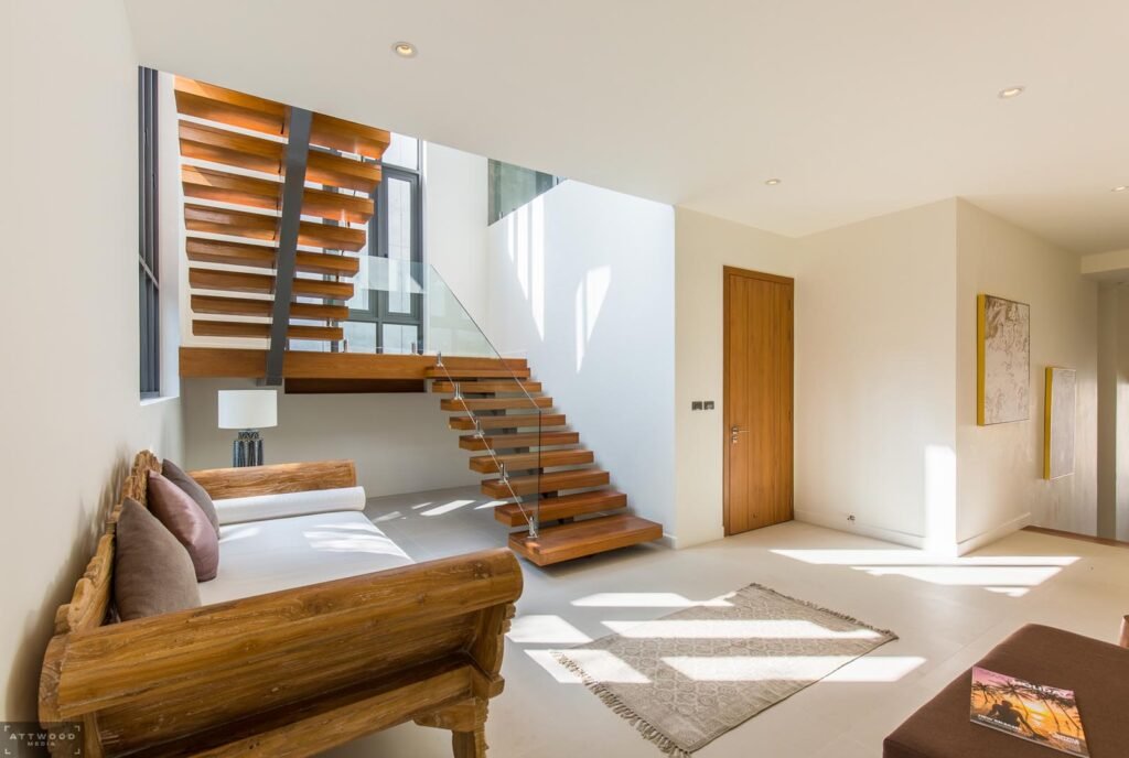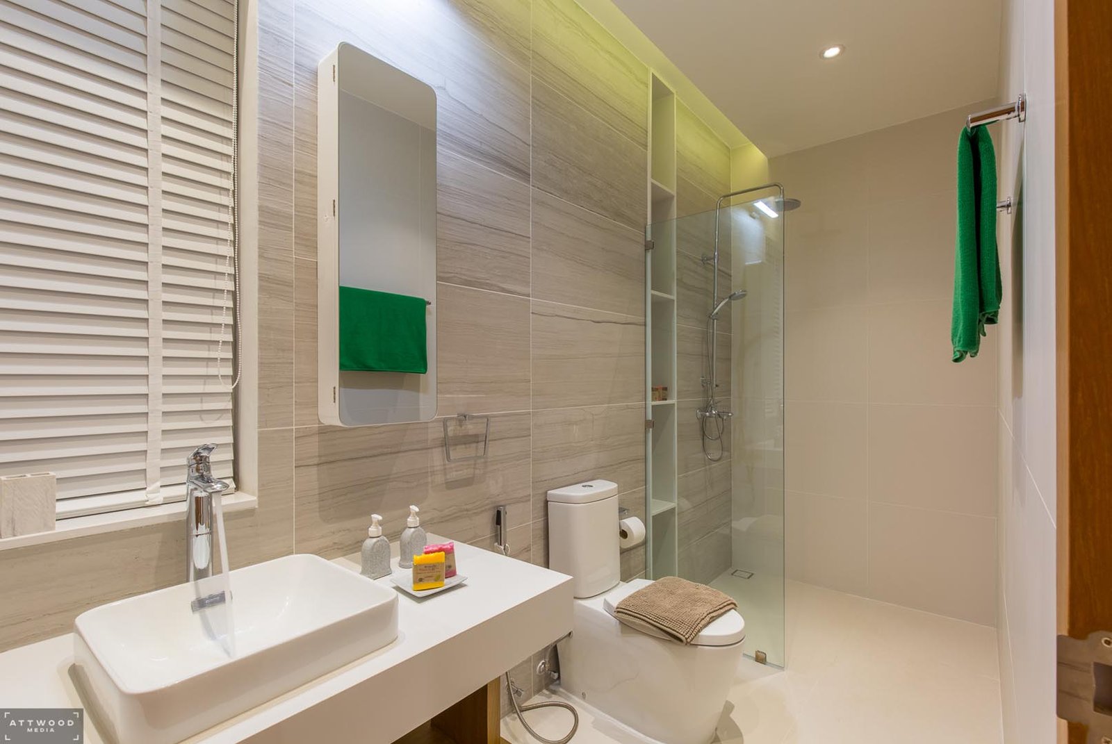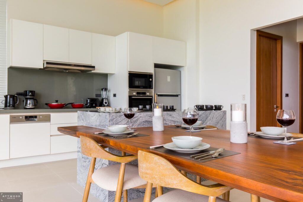Designed to integrate the best of in and outdoor living, an sea view white infinity pool with a large outdoor terrazzo, 1 living room with one flat screen smart TV and comfortable sofa ,the villa comes fully furnished including a fully equipped western kitchen and dining area with dining table that can accommodate comfortably from 10 persons and guest bathroom and 5 bedrooms, 1 bedrooms with private bathroom in the second floor next to the pool area and 4 bedrooms at the first floor villa entrance all with private bathroom ,parking for 1 car and 2 motorcycles, CCTV cameras system, fully Air-conditioning and ceiling every rooms, Laundry room.