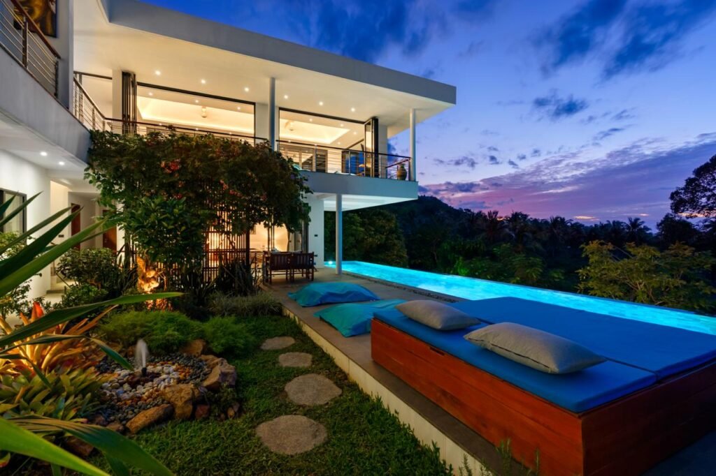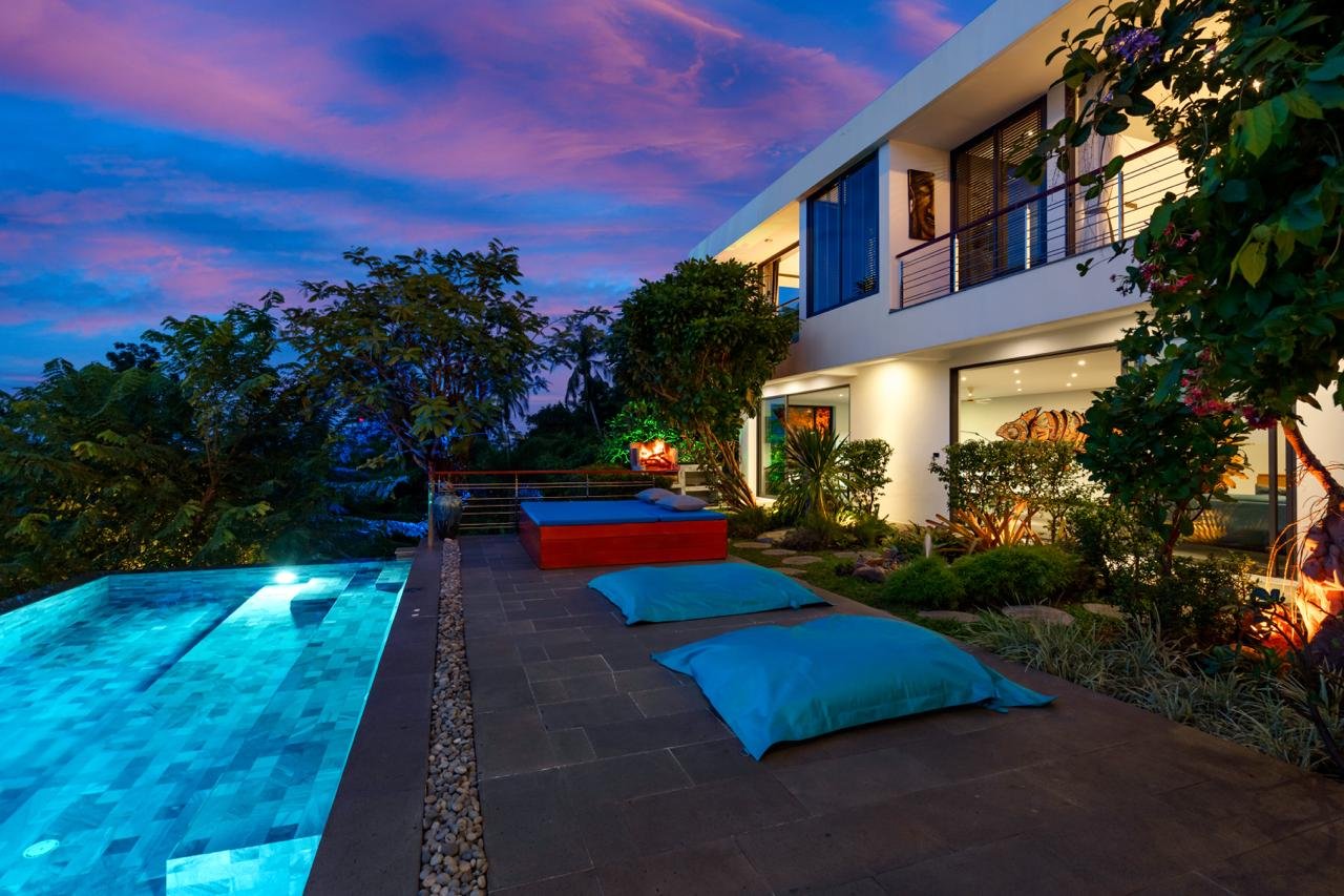 Elegant, tropical, luxurious, a well-appointed luxury holiday villa that majestically combines form and function, enjoying magnificent sea views of the small islands of Samui and beyond.
