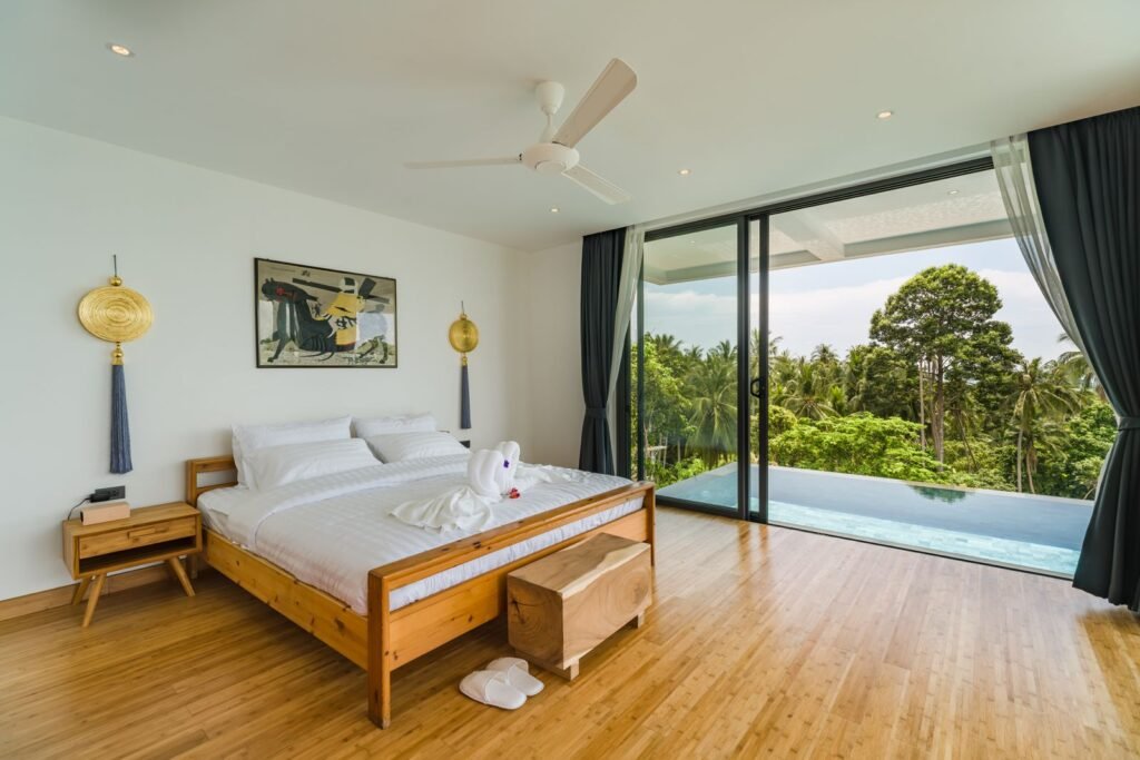 Accommodates 8 people comfortably, the villa is fully air-conditioned and equipped with ceiling fans.