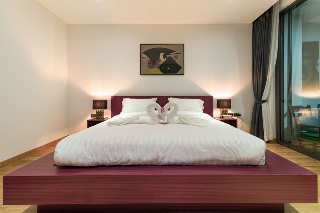 1,300 sqm of indoor/outdoor living space, luxurious sea view villa with beach access 5 minutes walk away, 3 bedrooms with 4 king size beds and ensuite bathrooms, 1 bedroom with queen size bed and ensuite bathroom in a separate area (service apartment).